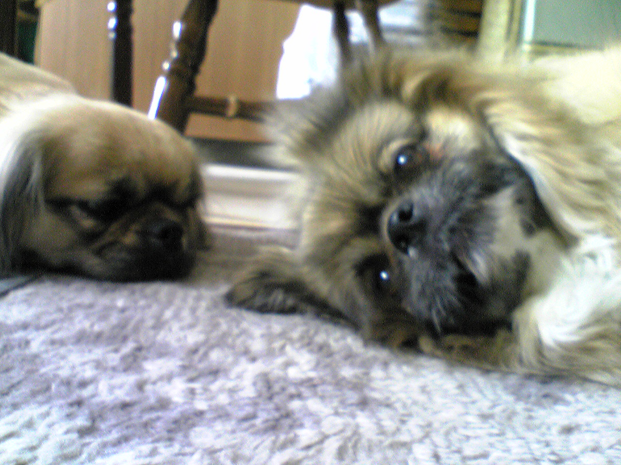 この子達はチベタンなんとかっていう高地にいる犬種なので、毛がもさもさなんです。