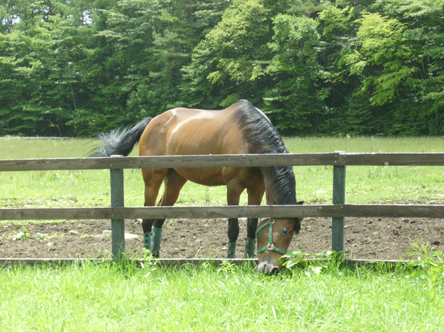 ケーキを買いに行く途中で放牧中の馬に遭遇。