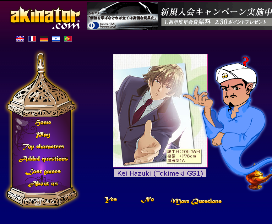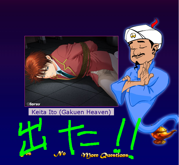 `Your charactor is female?`とかっていう質問に答えていくと、自分の好きなキャラクターを当ててくれるってヤツ。